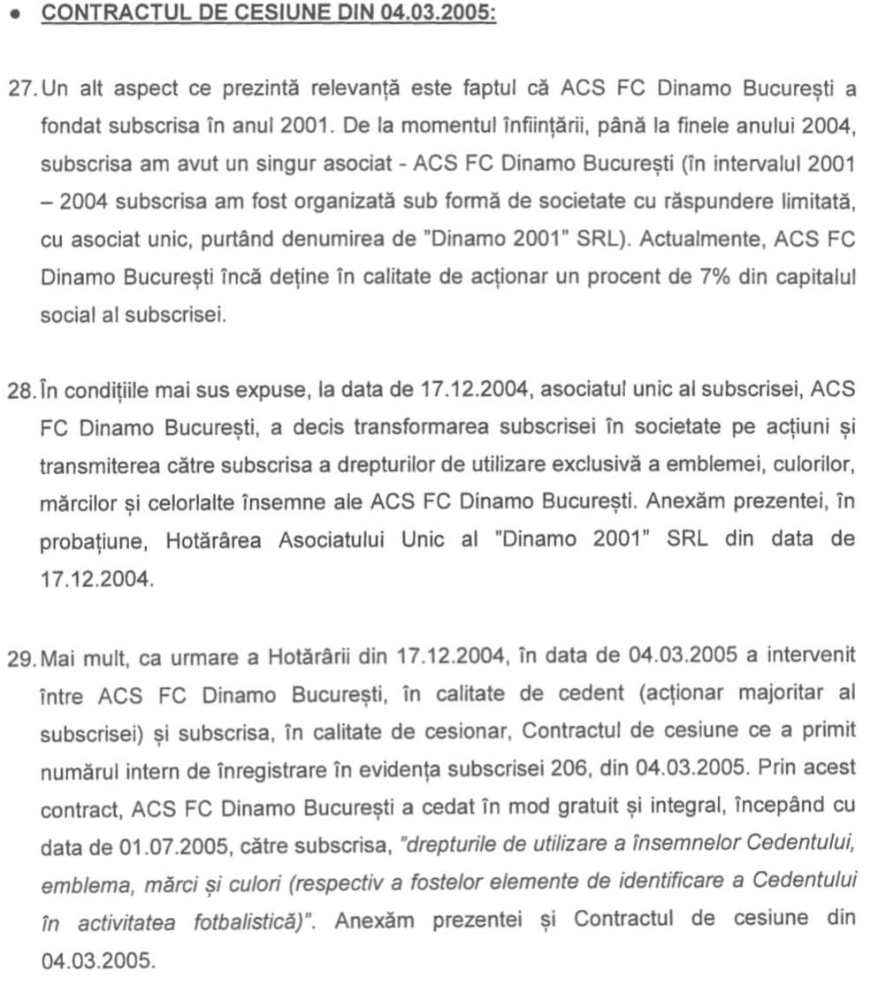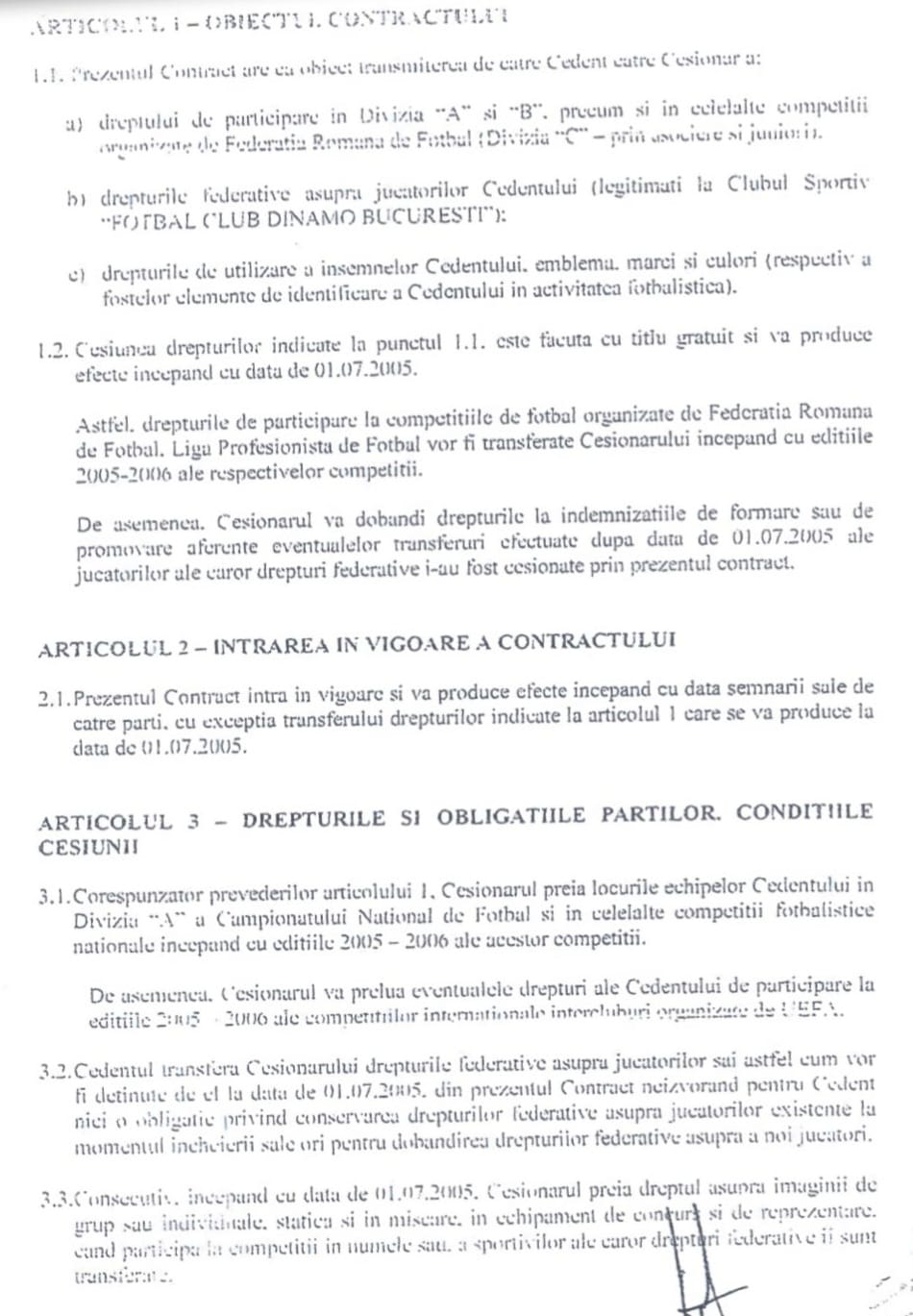 - Consultați în GALERIA FOTO toate paginile Contractului de cesiune dintre ACS FC Dinamo și SC Dinamo 1948 SA.