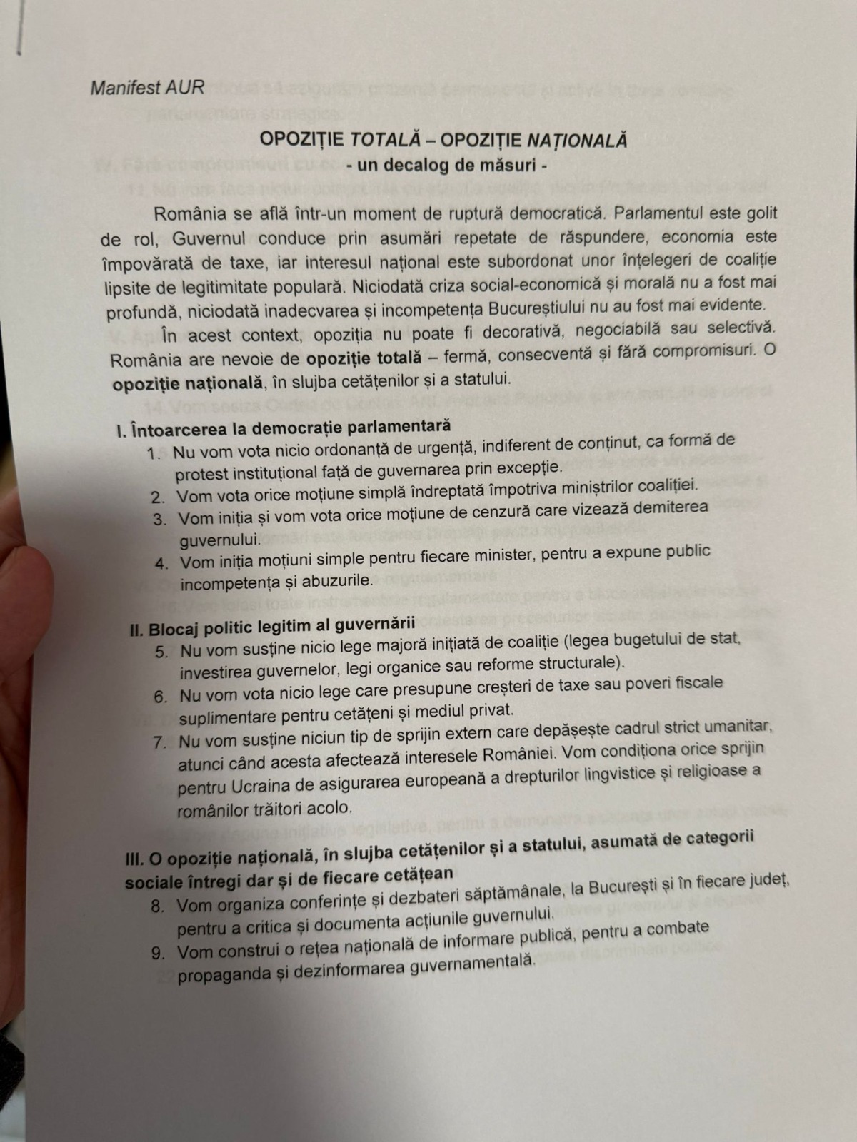 Potrivit documentului obținut de Gândul, AUR pregătește o strategie denumită „Opoziție Totală”