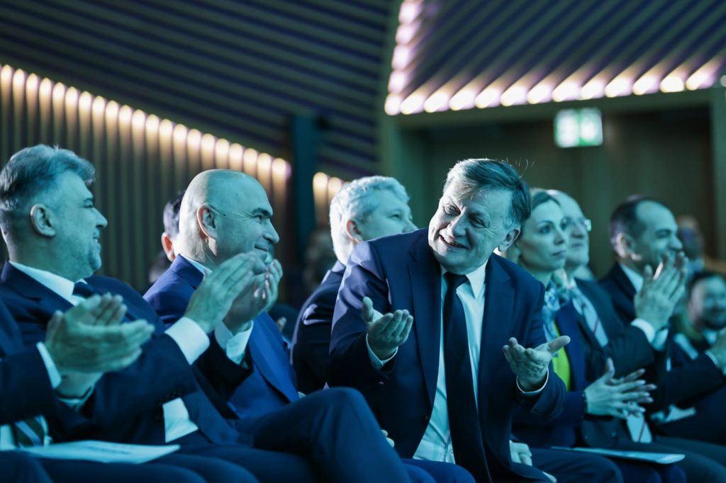 La eveniment au participat prim-ministrul Marcel Ciolacu, Ilie Bolojan, președintele interimar, și Kelemen Hunor, liderul UDMR.