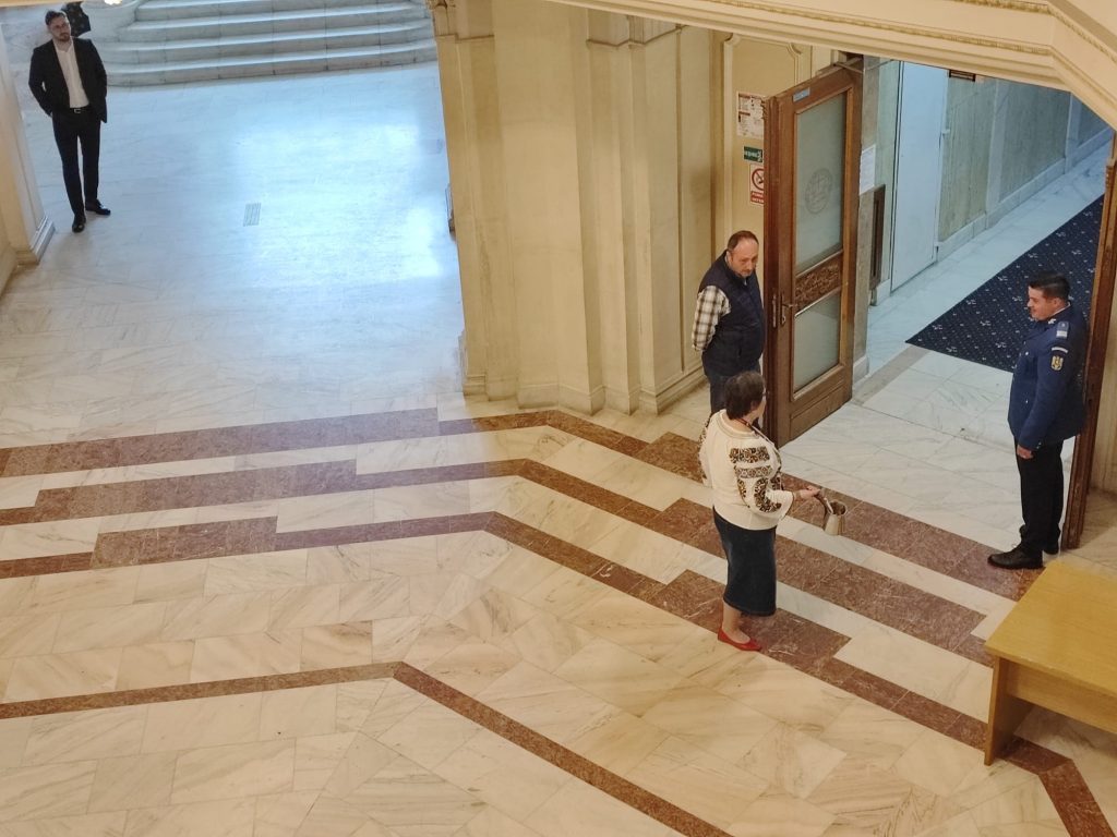 Relaxarea se observa şi în interiorul clădirii. O doamnă a fost observată circulând linistita cu o crăticioară, oprită într-un moment chiar în zona centrală, în timp ce numeroşi jurnaliști – reporteri, fotografi și cameramani – aşteptau ieşirea președintelui ales, Nicușor Dan, și a președintelui interimar, Ilie Bolojan.