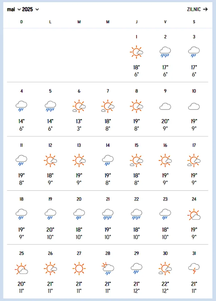 Mai 2025 aduce schimbări nefavorabile în prognoza meteo.