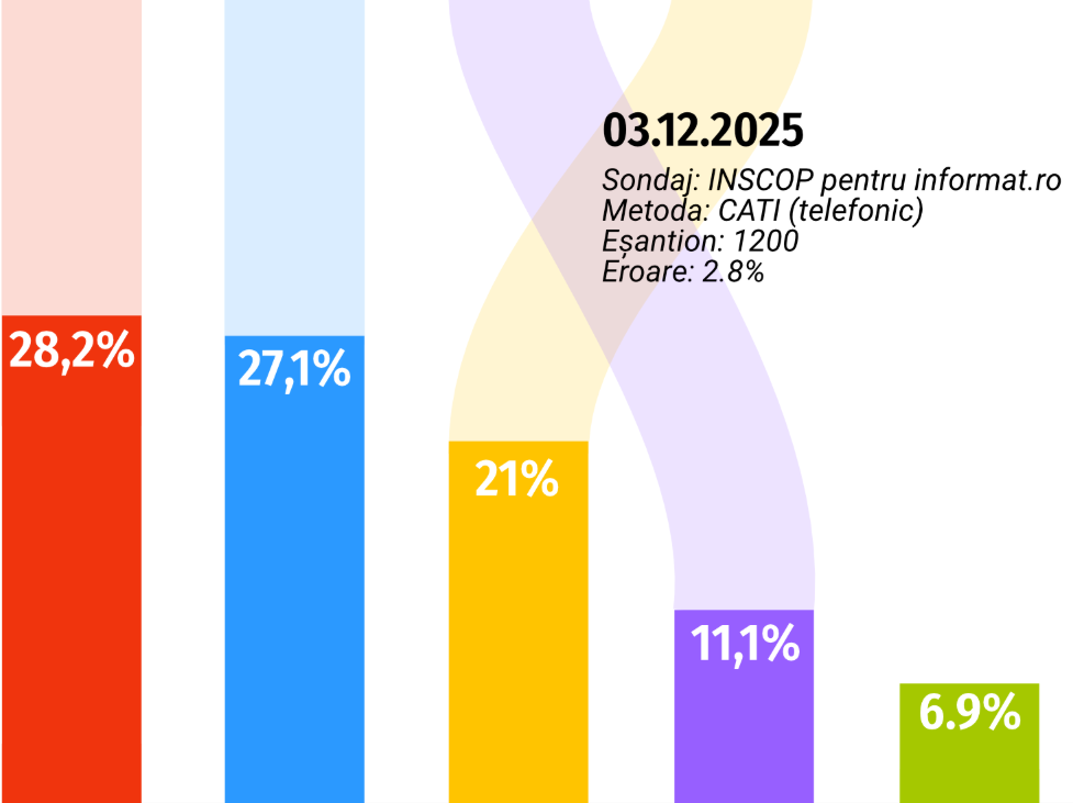 3 decembrie 2025. Sondaj INSCOP pentru informat.ro. Daniel Băluță, în vârf