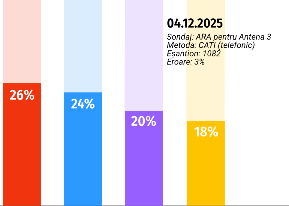 4 decembrie 2025. Sondaj ARA pentru Antena 3. Daniel Băluță, favorit la mică distanță de Ciucu