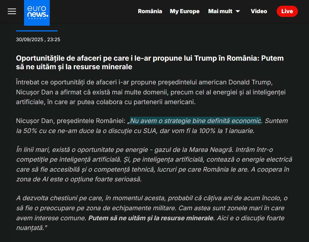 Din erori repetate, Nicușor Dan pare să nu aibă timp pentru a gândi și dezvolta o strategie națională, atât pe plan intern, cât și extern. Mai mult, șeful statului utilizează o metodă cel puțin discutabilă, aceea de a cere „legislații” de la mediul de afaceri autohton și „planuri” de la societatea civilă.