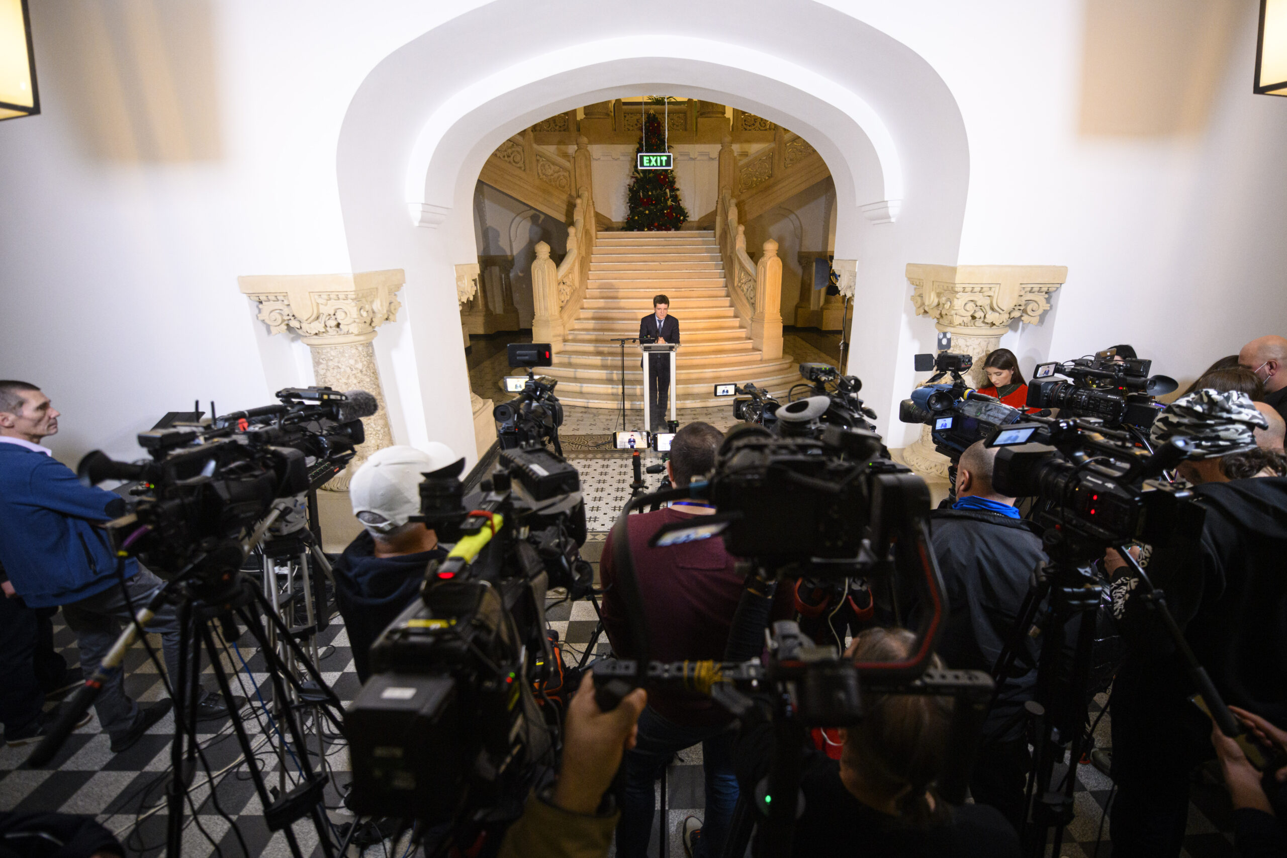 Primarul Capitalei, Nicușor Dan, anunță intenția de candidatură la alegerile prezidențiale, în cadrul unei conferințe de presă susținută la sediul Primăriei din București, luni, 16 decembrie 2024. ALEXANDRU DOBRE/ MEDIAFAX FOTO.