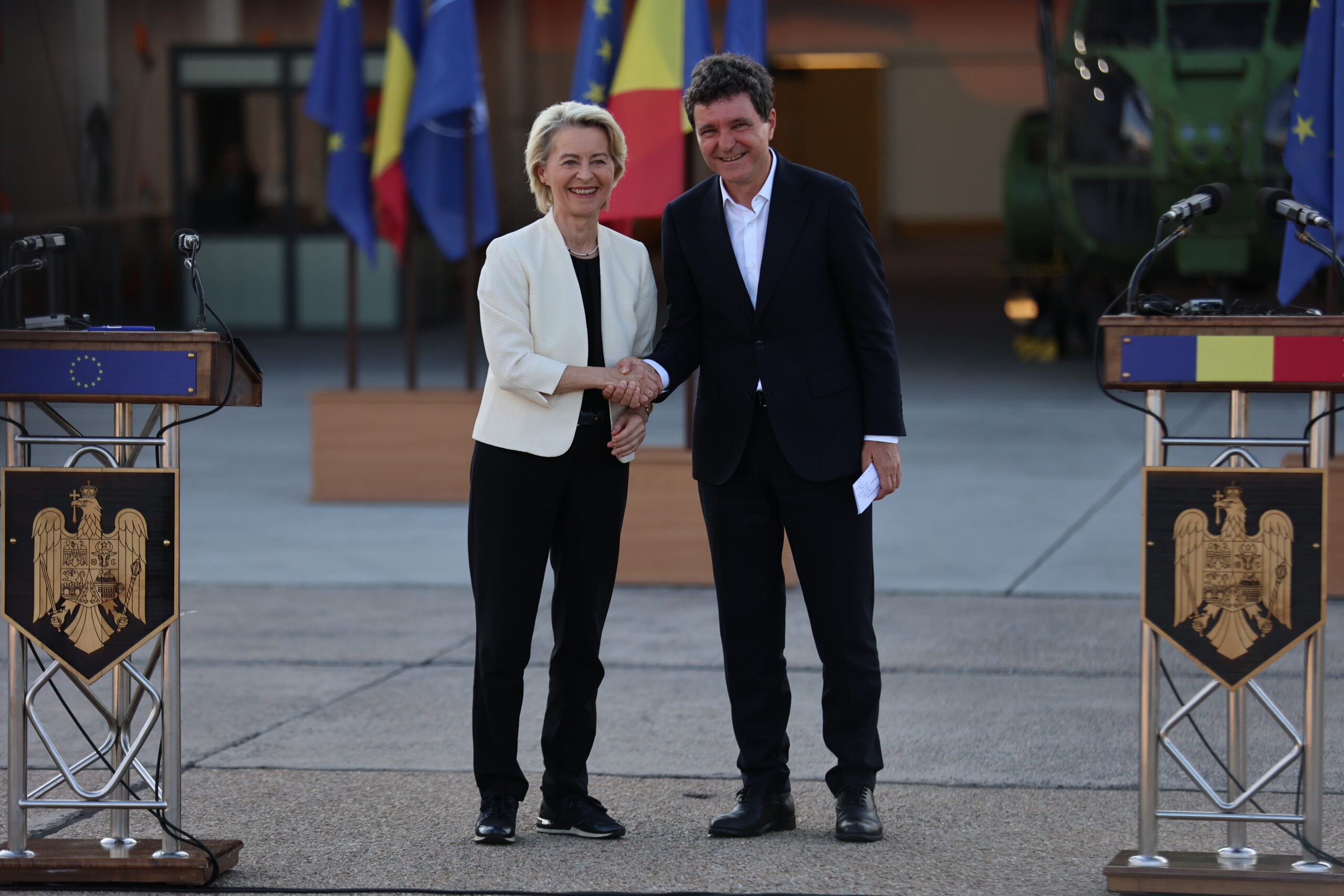 Președinta Comisiei Europene, Ursula von der Leyen, a vizitat oficial România, fiind primită de Nicușor Dan la Baza 57 Aeriană „Mihail Kogălniceanu” din Constanța. În cadrul întâlnirii, s-au discutat aspecte legate de siguranța europeană, cooperearea UE și NATO și consolidarea Flancului Estic.