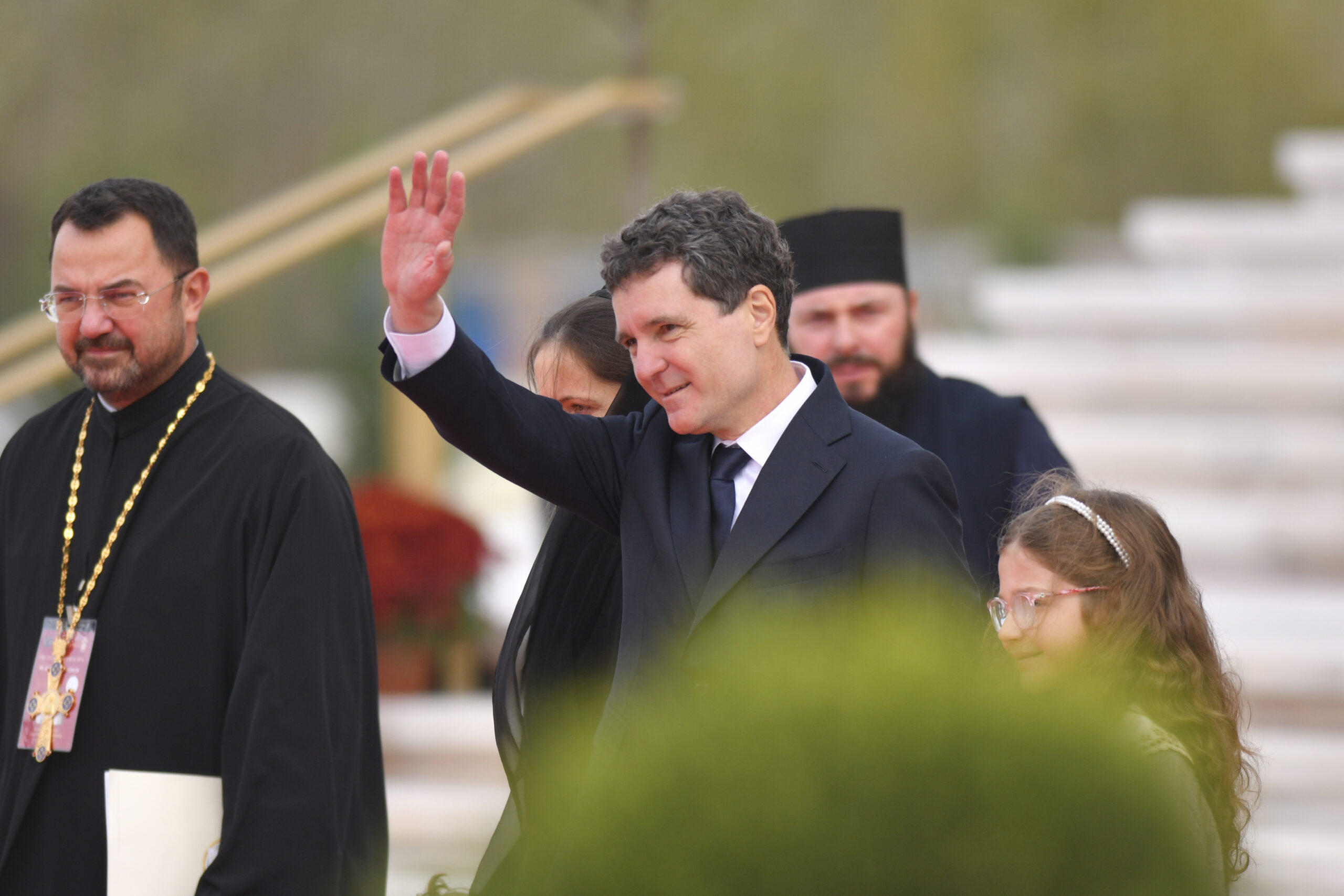 Nicușor Dan a participat la ceremonia de sfințire a Catedralei Mântuirii Neamului din București. Pelerinajul de consacrare a picturii locașului de cult a fost oficiat de Patriarhul Ecumenic Bartolomeu I și Patriarhul Daniel, iar liderul politic a asistat alături de membrii familiei sale.