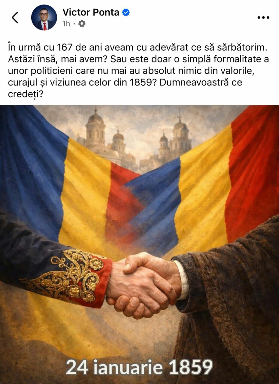 Fostul premier Victor Ponta a emis un mesaj critic pe platformele de socializare, exprimându-și opinia asupra unei părți din actuala clasă politică și punând sub semnul întrebării sinceritatea modului în care se celebrează Unirea din 1859.